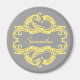 Elegant and sophisticated Chic Damask Magnet featuring a soft grey background and a stylish damask flourish embellishment in yellow. This modern design is easy to customise with your own text. Click "Customise It" to find more personalisation options.