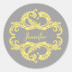 Elegant and sophisticated Chic Damask Stickers featuring a soft grey background and a stylish damask flourish embellishment in yellow. This modern design is easy to customise with your own text. Click "Customise It" to find more personalisation options.
