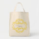 Elegant and sophisticated Chic Damask Bag featuring a stylish damask flourish embellishment in yellow. This modern design is easy to customise with your own text. Click "Customise It" to find more personalisation options.
