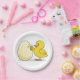 A cute yellow chick next to an egg. This design looks really effective on these Paper Plates