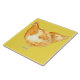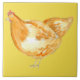 A bright ceramic tile decorated with a sweet chicken hen drawn with pencil and painted with watercolor on a bright yellow background. You can change the background colour to fit your needs.