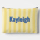 Roomy and ready for your next getaway. This travel pouch features a sunny yellow coastal stripe pattern in a full-coverage design and is personalised with your name in trendy shadow lettering. Great for makeup, lingerie, swimsuits, or anything you want to tuck away in style. || Explore the collection link to discover matching tote bags and tumblers in this design. || Click on "personalise this design" to add your details. Please message us with questions or Custom Design requests.