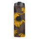Yellow coneflowers on dark brown thermal tumbler
