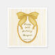 Elegant yellow bow retro stripes bow birthday party monogrammed napkins, adults birthday party personalized printed napkins, yellow stripped birthday party personalized napkins, oval ribbon preppy bow border party custom napkins, retro birthday personalized party supplies coquette preppy birthday party printed napkins