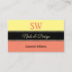 Make a lasting impression with this stylish business card design featuring light yellow, black and salmon coloured stripes with pretty shimmery small gold decor.