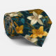 A detailed floral pattern featuring yellow and cream lilies with rich green and teal leaves on a dark background. Elegant, botanical, and artistic—perfect for modern floral neck ties.