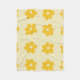 Sunny yellow and cream flower pattern blanket featuring delicate tropical blooms, whimsical botanical motifs, and retro spring summer charm for a warm decorative accent.