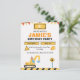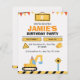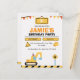 Get ready to dig, build, and play with this fun construction truck birthday invitation! Designed with bright orange, yellow, and black construction elements, it features an excavator, caution signs, and playful banner accents — perfect for little builders who love trucks and diggers. Easily customise with your child’s name, age, date, and party details. Ideal for toddler or boys’ birthdays, construction parties, and truck-themed celebrations.