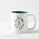 Yellow Daffodil Leaves Floral Stripe Monogram Two-Tone Coffee Mug