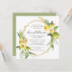 Modern Boho Chic Graduation square invitation begins with a thin double gold oval frame. Pale yellow daffodils with deep red centres decorate the gold frame. A variety of green leaves and vines combine with the daffodils to create the rustic Boho vibe. The greenery varies from pale yellow-green to deep green. The invitation back is a soft sage green. In addition to the invitation and mailing accessories, party supplies are also available. These include plates, napkins and welcome banners. You should see a link to the Yellow Daffodil Graduation collection on this page. If you don't see the link or you need help with a template, please contact me.