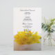 The pretty Yellow Daffodils on White Spring Wedding Menu can be customised with the details of the meal that you will serve at your wedding brunch, bridal shower, rehearsal dinner or marriage reception by adding the salad or first course, entree or second course and dessert or third course. Please change the text or font to suit your nuptial needs. This elegant flowery wedding menu features a floral photograph of a bouquet of yellow narcissus flower blossoms with a white bridal veil. Perfect inspo or idea for the couple who has planned a classy March, April or May springtime garden party theme.