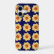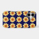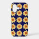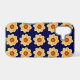 Protective and trendy phone case for the Apple iPhone and features the photo image of a yellow Dahlia flower on a navy blue background and printed in a repeating pattern. A fun, floral design! Select case for your iPhone model. NOTE: When changing case styles, you may need to adjust image pattern position on case.