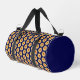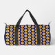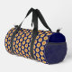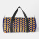 Travel or head on down to the gym in style with this small duffle bag that features an image of a yellow Dahlia flower printed in a repeating pattern on a navy blue background along with solid, navy blue trim on side ends of bag. A fun, floral design!