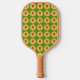 Pickleball paddle that features the photo image of a yellow Dahlia flower on a lime green background and printed in a repeating pattern. A fun, floral design! Select your pickleball paddle handle colour and other options.