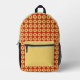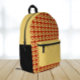 Travel with this stylish and trendy backpack that features the image of a yellow Dahlia flower bloom on a bright, red background and printed in a tiled pattern on front side only. A fun, floral design! Top of backpack and zippered pouch is a matching, solid yellow colour. Sides and back are black.