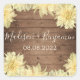 Yellow Dahlia Flower Rustic Wood Wedding Date Square Sticker