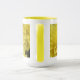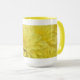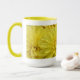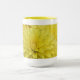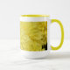 Macro photograph of yellow dahlia on 15oz yellow ringer mug.