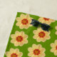 Have fun in the sun and beach with this large beach towel that features the image of a yellow Dahlia flower on a lime green background and printed in a repeating pattern. A fun, floral design!