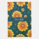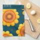 Yellow Daisies Blue Background Botanical Pattern Tea Towel