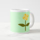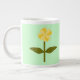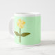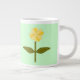 This awesome mug features a digital image of a daisy with a green stem with two green leaves on it and light and dark yellow coloured petals. This is a simple, yet beautiful design. The background is a pale grass green colour.