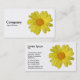 A business card template with an isolated photo image of a yellow daisy after a rain shower. Suitable for a variety of businesses. Ready to be customised. The company details are on the front with name and contact details on the reverse side. Background colours are customisable.
