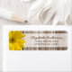 A country themed address label featuring barn wood and a yellow gerbera daisy.