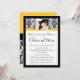 This invitation is fully customisable to your text. A lovely invite from our collection of graduation invitation gallery. Choose the perfect design for your favourite teen girl to match the reception theme, dress colour, or dance theme. Feminine, girly black and white design with fresh sunny yellow accents, along with a single custom photo.