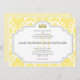 Yellow Damask Wedding Invitations Monogram M. These yellow damask wedding invitations include a princess crown within an arched frame with template text for you to customise. You may change the font of the text by clicking "customise it" and using the custom tools to the right of the invitation image. If you need help feel free to click on "Contact" and email a request.