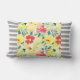 Grey and White Striped Yellow Floral Pattern Reversible Lumbar Throw Pillow