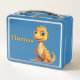 A Personalised Childs Yellow Dinosaur Metal Lunch Box For School