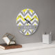Yellow Dk Gray White LG Chevron Gray Name Monogram Large Clock