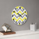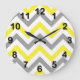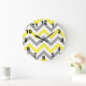 Yellow, Dk Gray Wht Large Chevron ZigZag Pattern Large Clock