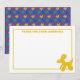 These flat panel thank you cards are the perfect way for kids to send their thanks for birthday gifts. They feature an illustration of a cute balloon animal dog in sunny golden yellow with your own personalised message at the top in royal blue. The back has a pattern of dog shaped balloon animal sculptures in primary colours. Find coordinating party supplies and more in the Doggy Balloon Sculptures collection from Asterisk Designs.