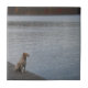 Yellow dog on dock tile