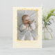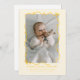 Whimsical and sweet birth announcement card featuring hand drawn photo frame of yellow line with bows.