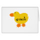 A yellow duck with orange feet and bill and text that reads "quack" on duck themed T-shirts, mousepads, tote bags, mugs, and other duck items!