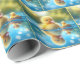 A fluffy yellow duckling floats beside a tiny wooden boat holding an even smaller duckling, both surrounded by serene blue water and soft reflections
