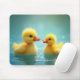 Yellow Ducklings Swimming On Blue Water Mouse Pad
