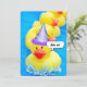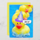 Yellow ducks floating in a swimming pool with party hat and water splash for a birthday Pool Party