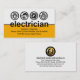 A retro white and yellow layered cover features a "electrician" signage that acts as a demarcation line. Near the base of the card are the contact details.