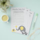Use our yellow and grey elephant themed baby shower game cards to have the guests "Guess the Baby Food." Set out jars of baby food with the labels covered and have guests try to guess what the flavour of each jar is using sight, smell, and even taste.
