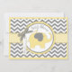 Chic grey and white chevron print with yellow contrast and a cute yellow elephant and 3D-look bow and ribbon trim gender neutral baby shower invitation card.