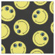The yellow emoji faces on this fabric have blue eyes. Design has a black background which may be customised to any colour you wish.