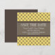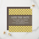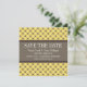 Trendy and chic Fancy Lattice Save the Date Announcements featuring a stylish circle and diamond studded pattern over a vibrant lemon zest yellow background with a broad two-toned brown border. This elegant save the date invitation is perfect for announcing your modern wedding. Easy to customise, simply add your wedding details in the text fields provided. Click "Customise It" to find more personalisation options.