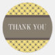 Trendy and chic Fancy Lattice Thank You Stickers featuring a stylish circle and diamond studded pattern over a vibrant lemon zest yellow background with a broad two-toned brown border. These elegant thank you stickers are perfect for a modern wedding. Easy to customise, simply add the personalised text of your choosing. Click "Customise It" to find more personalisation options.