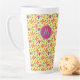 Enjoy your morning cup of coffee with this customised Mexican-inspired floral patterned latte mug. The bright colours and geometric folk art set against the bright yellow mug, are sure to brighten your day. Personalise this mug with your initial in your choice of font and colour.