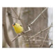 Yellow finch sitting in a tree in late fall, once the leaves had left out trees.