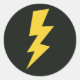 Yellow flash lighting bolt strike stickers. Powerful zigzag thunderbolt design with custom text optionally. Whimsical thunder strike with black background..