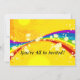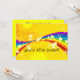 Bright yellow highlighting this flashy rainbow of red,blues,green,orange,& purple. A fun design full of whimsy.