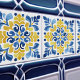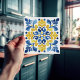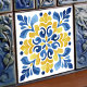 Add a splash of Mediterranean sunshine to your home with our Golden Fleur-de-Lis Azulejo Tile Print. This exquisite piece captures the vibrant beauty and intricate designs of the iconic Portuguese azulejos. The bold golden yellow and rich royal blue hues are accented by delicate touches of white and orange, creating a warm and inviting ambiance. While it maintains the look of traditional tilework, this print is crafted without the physical relief or bevel for ease of installation. It's a stunning way to bring historic elegance to any room, functioning beautifully as a backsplash, a statement piece, or a unique coaster for your living space.